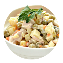 Несколько видов салатов, например, оливье, свежие овощи с зеленью или другие салаты по желанию;