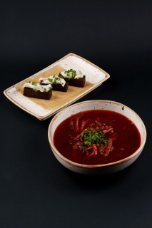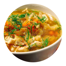 Щи с мясом, борщ, солянка, уха и другие блюда.